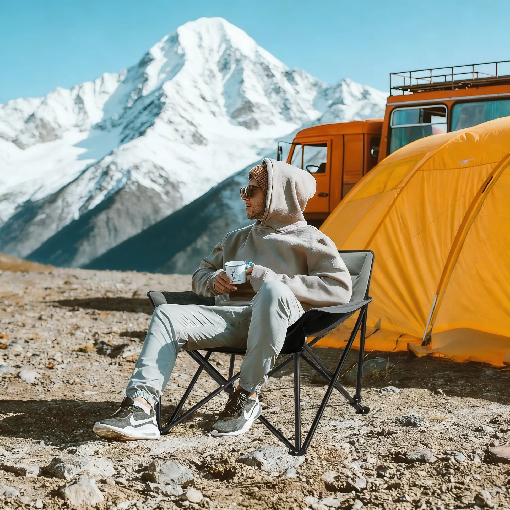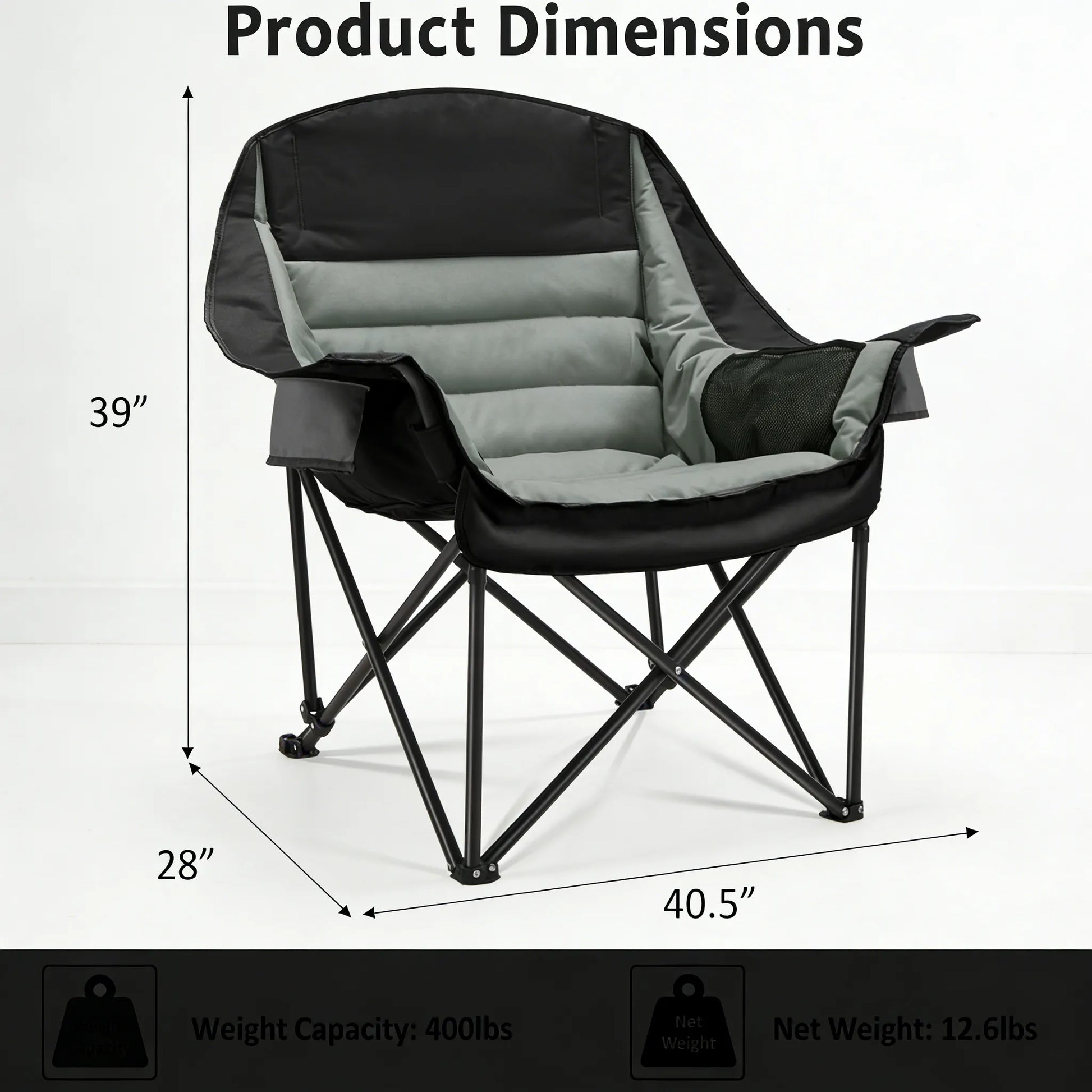Unparalleled Comfort: Designed based on ergonomic principles, our camping chair offers a generous seat with dimensions of 40.5'' L x 28'' W x 39'' H when unfolded. The high-density padding on the headrest, backrest, armrests, and seat cushion ensures great comfort, offering support for your head, neck, back, waist, and hips. Whether you are sitting for long periods or just relaxing, this chair guarantees a comfortable experience.