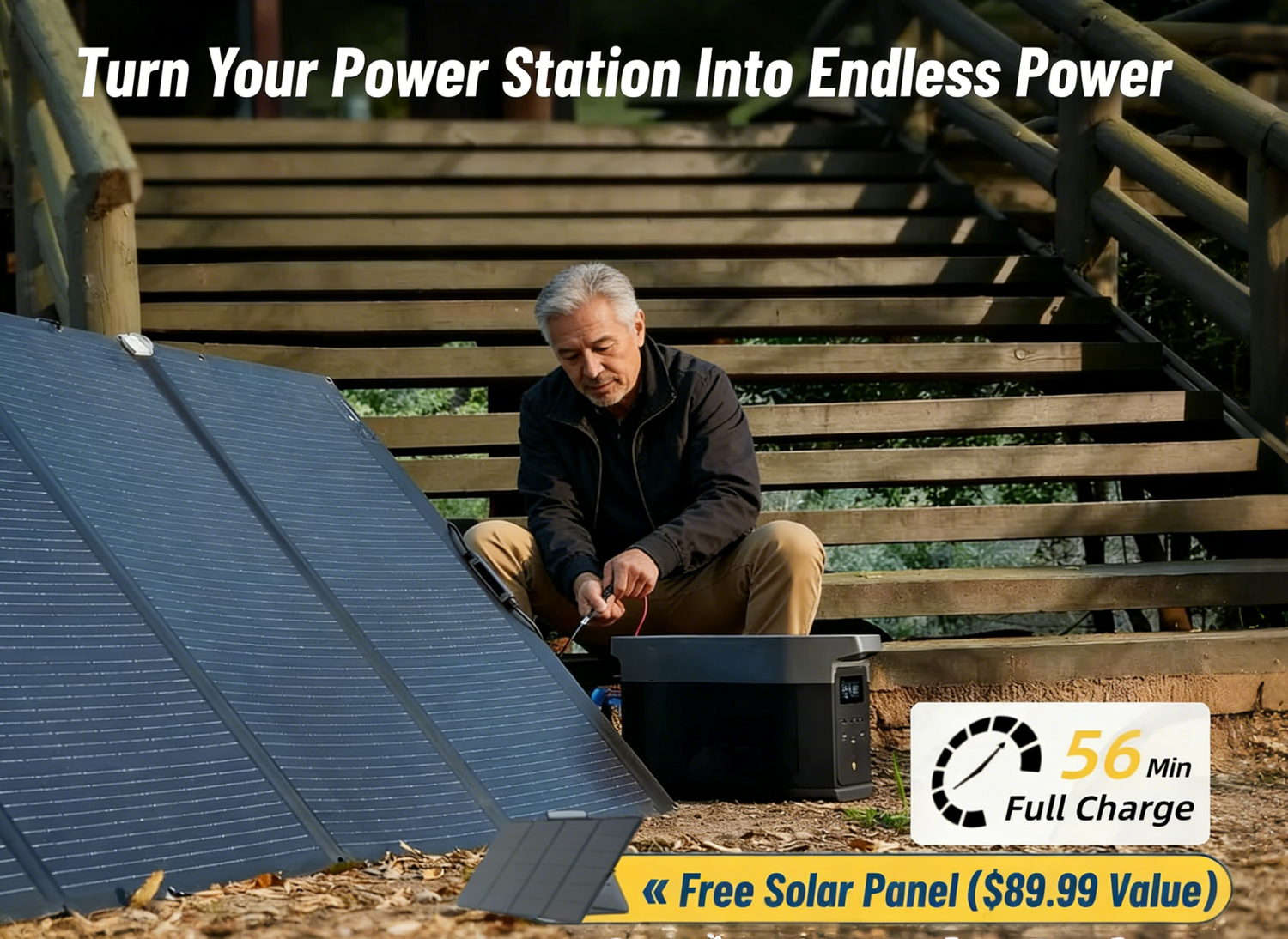 I'll be honest-I didn't believe the"free solar panel" deal at first.But it arrived exactly as promised-power station and solar panet together!The quality's amazing, and I haven't run out of power once. it's like having endless energy on standby. Totally impressed!